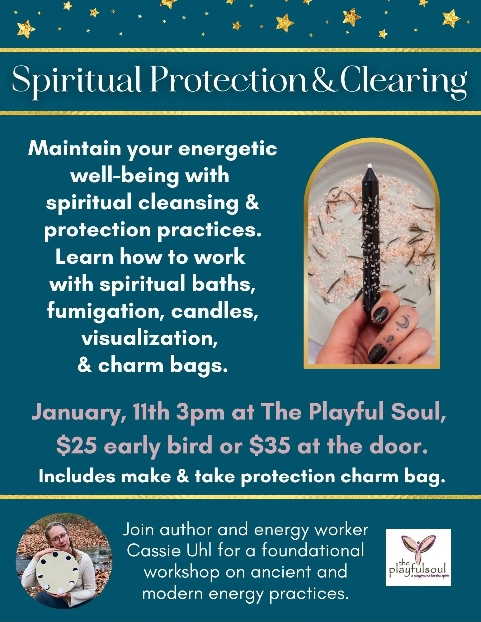 Be energetically unfuckwithable! Explore ancient and modern practices to maintain your energetic well-being. You'll learn the basics of energetic maintenance, including energetic maintenance/clearing, energetic protection practices, and why both are important. Explore how to work with spiritual baths, fumigation, candles, visualization, and & charm bags. Make and take energy protection charm bag included.